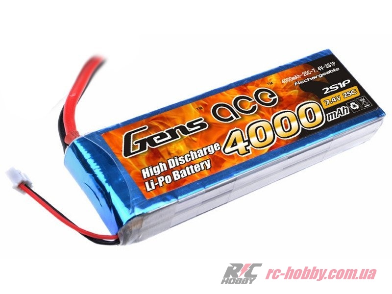 Аккумулятор Gens Ace LiPO 7,4В 4000мАч 2S 25C 135х48х24мм 247г T-Deans (B-25C-4000-2S1P)