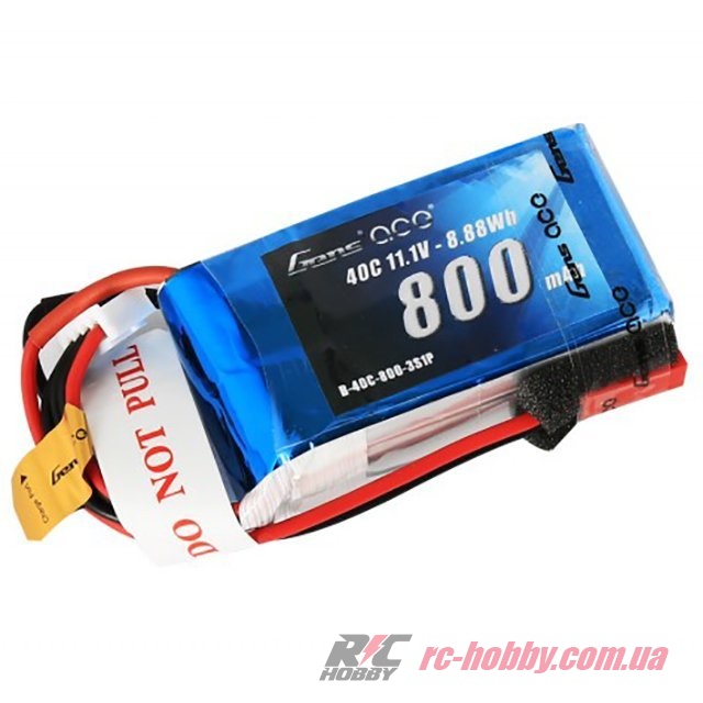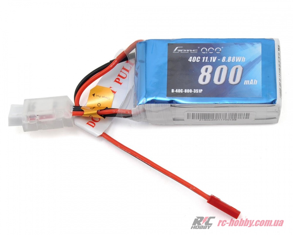Технічні характеристики Аккумулятор Gens Ace LiPO 11,1В 800мАч 3S 40C 58х30х23мм 72г JST-SYP (B-40C-800-3S1P)