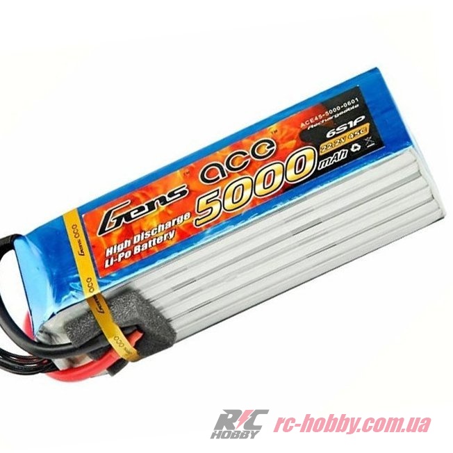 Технічні характеристики Аккумулятор Gens Ace LiPO 22,2В 5000мАч 6S 45C 157х46х50мм 782г T-Deans (B-45C-5000-6S1P)