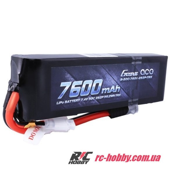 Аккумулятор Gens Ace LiPO 7,4В 7600мАч 2S 50C 129х47х24мм 392г Traxxas (B-50C-7600-2S2P-TRX)