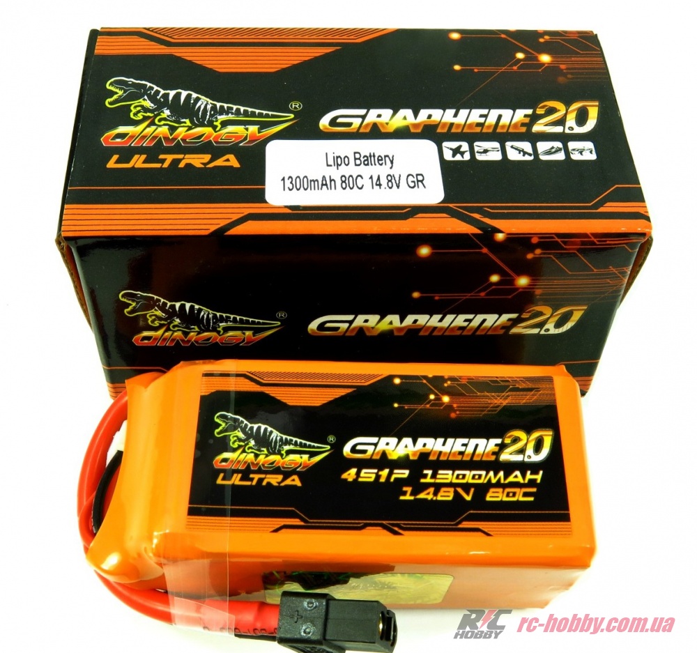 Акумулятор Dinogy ULTRA G2.0 Li-Pol 1300mAh 14.8V 4S 80C XT60 70x34x33мм