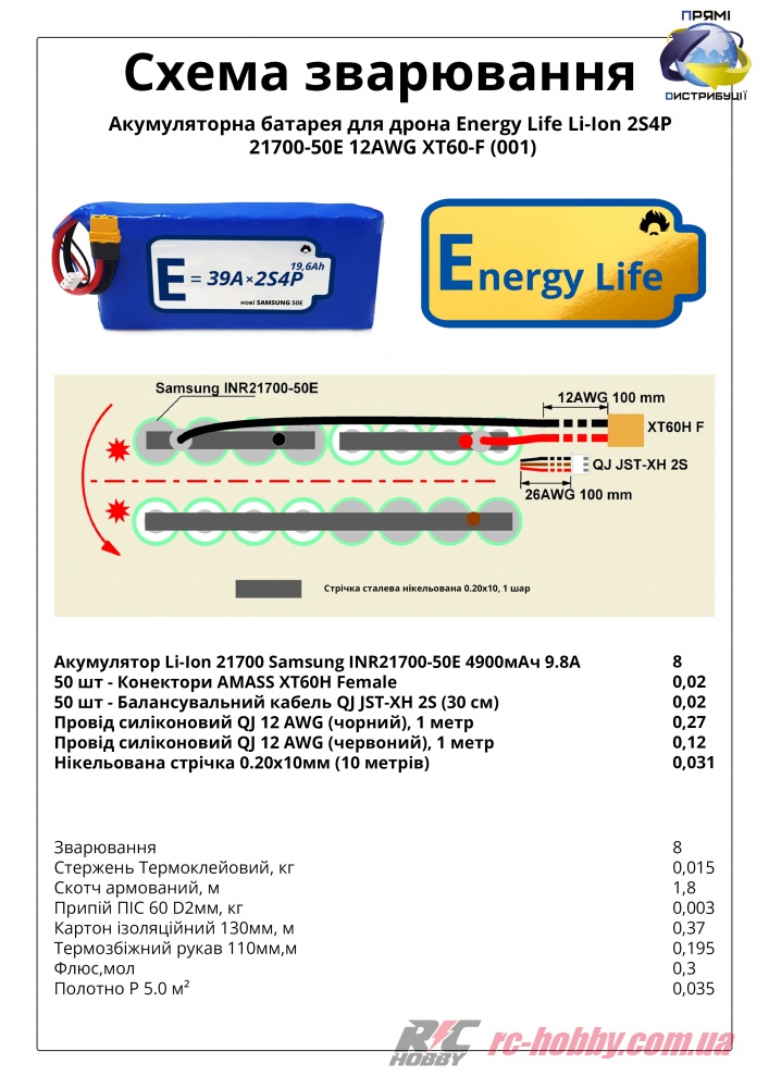 Фотографії Батарея Energy Life Li-Ion 2S4P 21700-EVE50E 12AWG XT60-F (001)