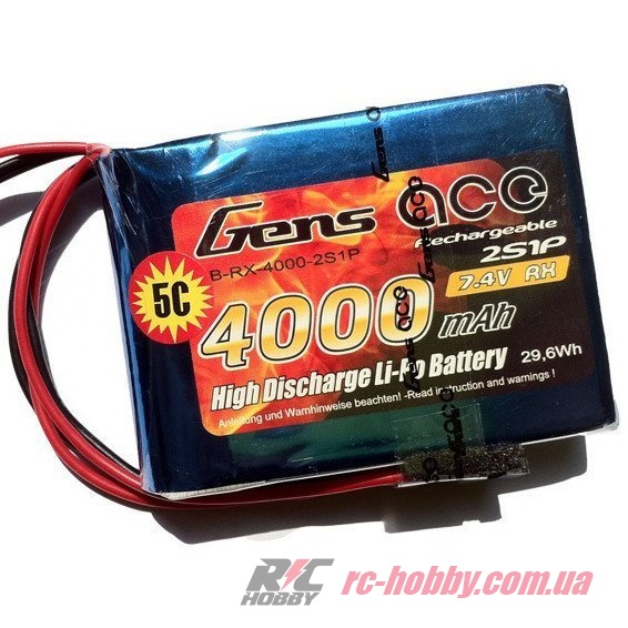 Акумулятор Gens Ace LiPO 7,4 4000 мАг 1С 2S (B-RX-4000-2S1P) спеціально розроблений для використання в апаратурах Spektrum DX9, DX8, DX7S, DX7 і Futaba.