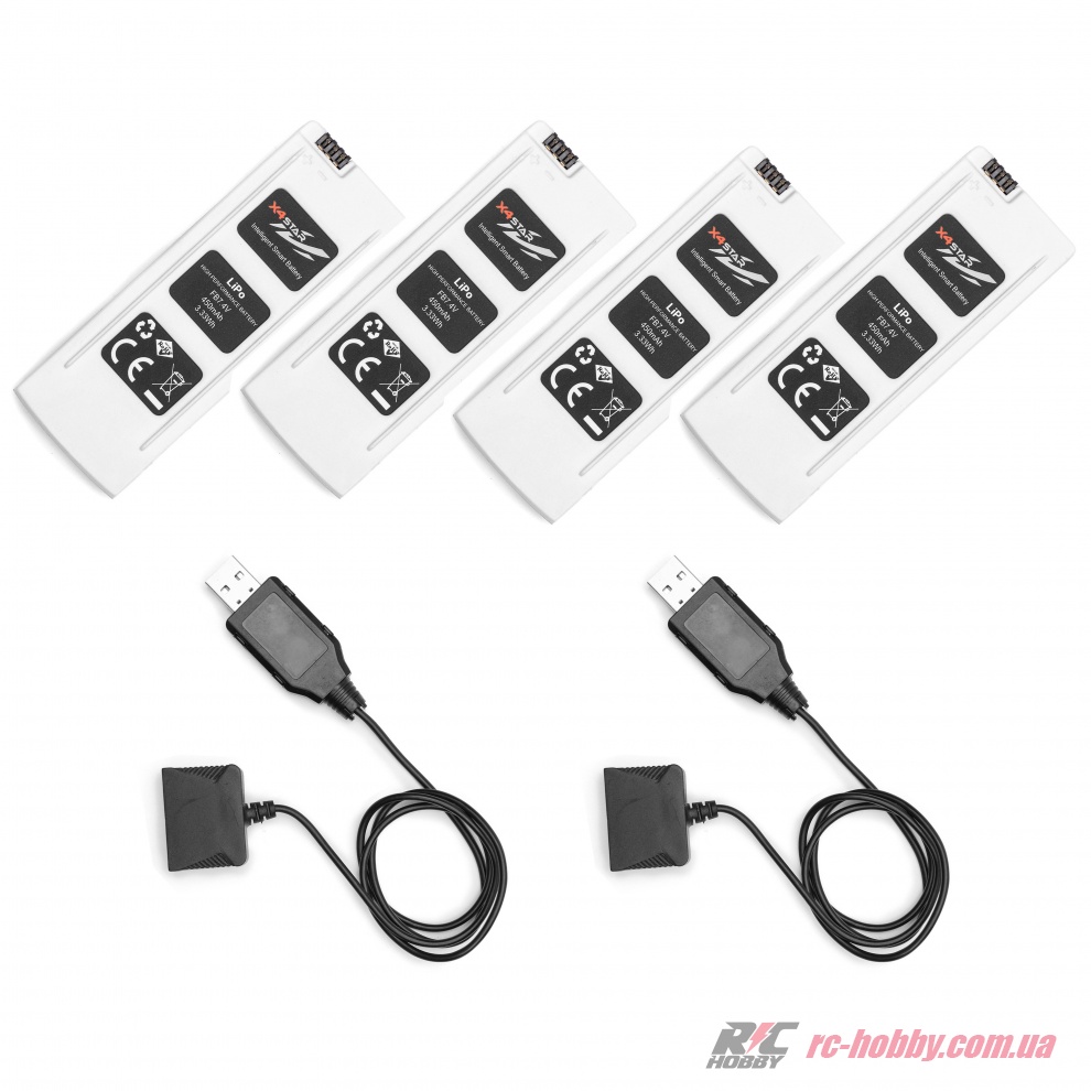Технічні характеристики Комплект Hubsan 4 акумулятора 450мАг 2S + 2 зарядних пристрої для квадрокоптера H502C (H502C-09)