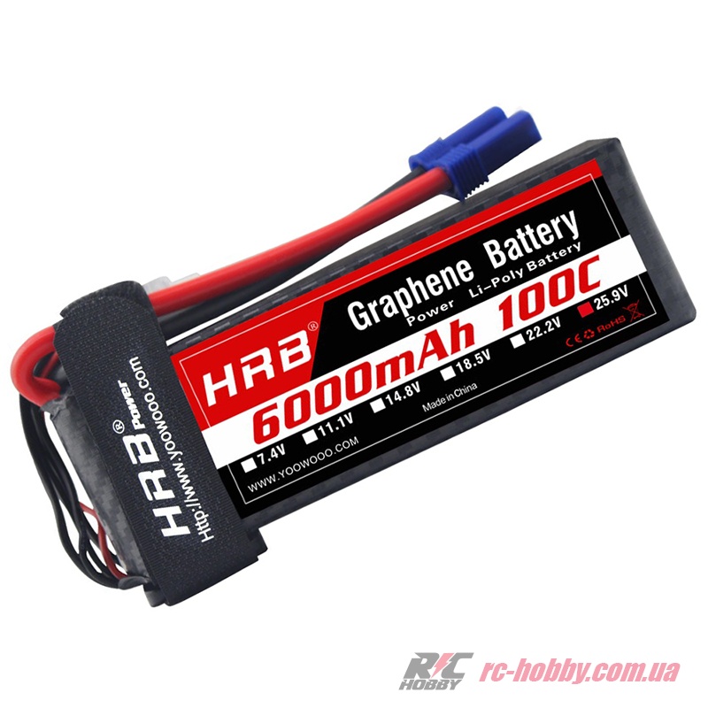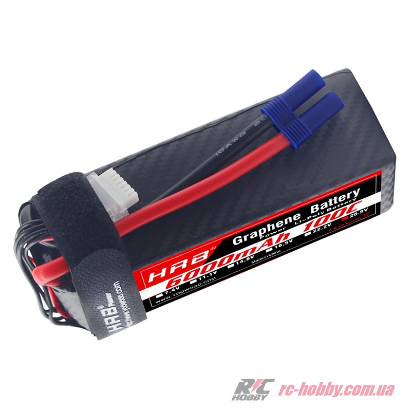 Акумулятор HRB Graphene 7S 25,9В 6000мАг 100C (HRB-GRN-6000-7S-100C-EC5) — це топова літій-полімерна батарея з графеновою технологією, яка забезпечує виняткову провідність, мінімальне просідання напруги навіть на піку навантаження та значно довший термін служби порівняно зі звичайними LiPo.