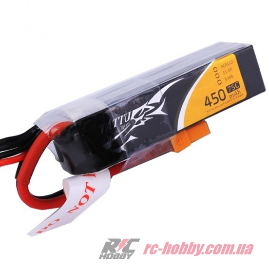 Аккумулятор Tattu LiPO 11,1В 450мАч 3S 75C 63х16х21мм 45г XT30 (TA-75C-450-3S1P-L)