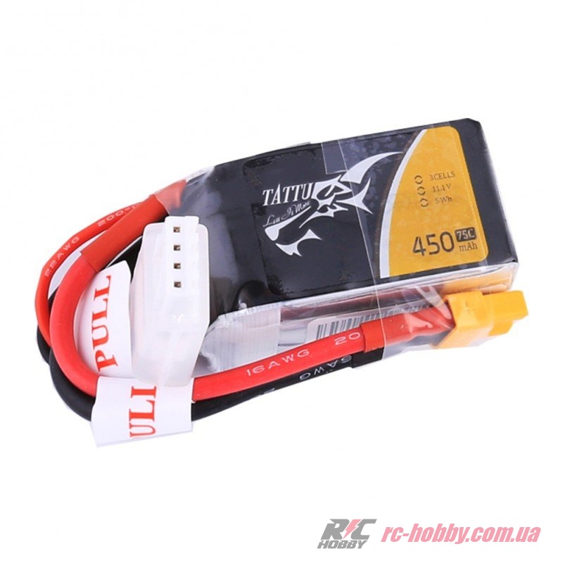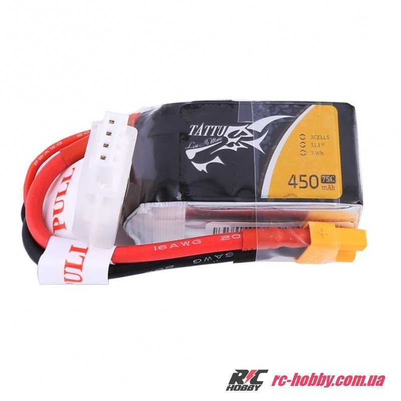 Акумулятор Tattu LiPO 11,1В 450мАг 3S 75C 45х24х21мм 42г XT30 (TA-75C-450-3S1P)