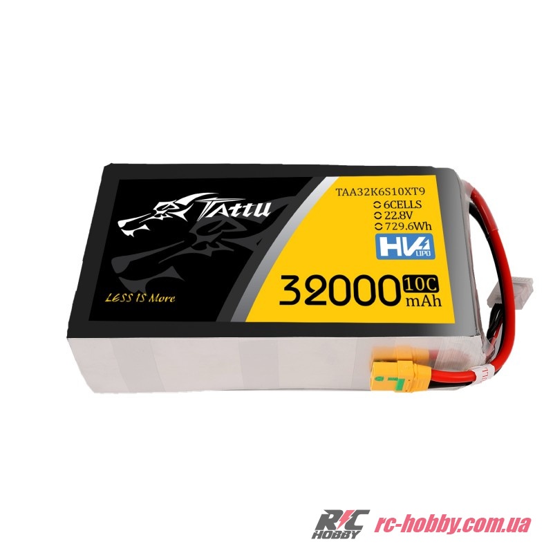 Оригінальний акумулятор Tattu LiPO HV 22,8В 32000мАг 6S 10C 218х121х63мм 3420г XT90-S Anti-spark (TAA32K6S10XT9)