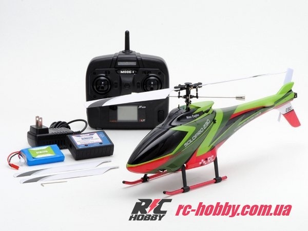 Купить радиоуправляемую модель Solo Pro 230 можно и начинающему rc-шнику, она легка и доступна в управлении. Оснащена двумя мощными коллекторными двигателями, основной двигатель – 350 класса, и хвостовой – N50 класса. Двигатели снабжаются энергией от литий-полимерного аккумулятора емкостью 1000 мАч. Время полета без подзарядки достигает до 10 минут. Но этого достаточно, чтобы запустить вертолет и получить самые незабываемые впечатления от управления моделью и снять все это на фото или видео. Для продолжения полетов бортовой аккумулятор можно зарядить от бытовой сети 220 вольт используя специальное зарядное устройство с блоком питания, которое поставляется в комплекте с запасными лопастями и инструментом. Зарядка занимает порядка 40 минут – и можно продолжить полеты, записывать новые видео и делать снимки с высоты.