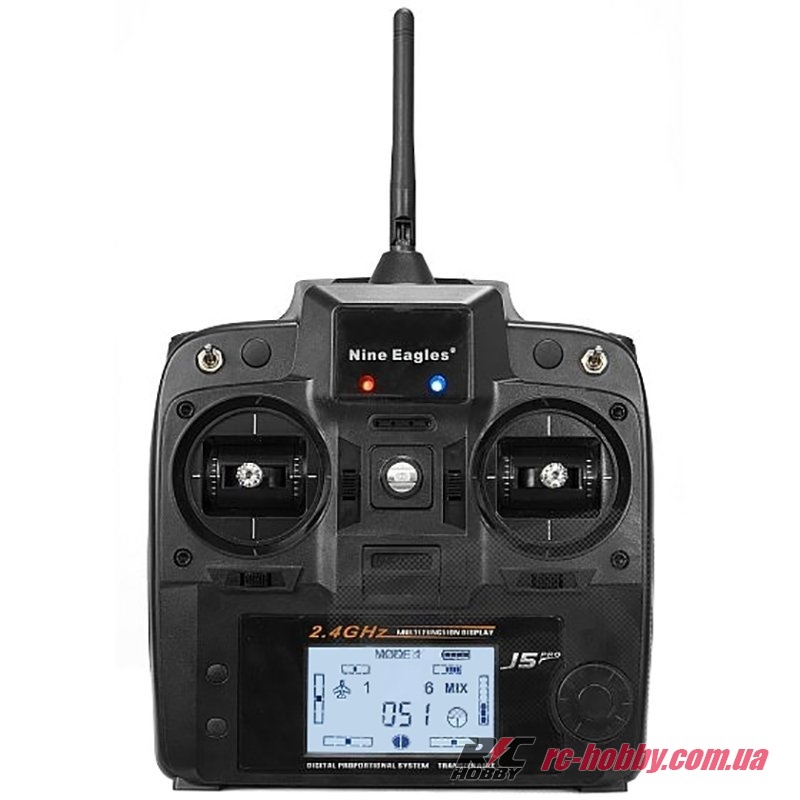 Пілотування 4-х канальним вертольотом відбувається за допомогою передавача в частотному діапазоні 2,4 ГГц. Ця перешкодостійка частота дозволяє здійснювати запуск декількох моделей одночасно. Режими керування Mode1 і Mode2 перемикаються простим переміщенням антени — ви зможете вибрати будь-який, який буде зручнішим.