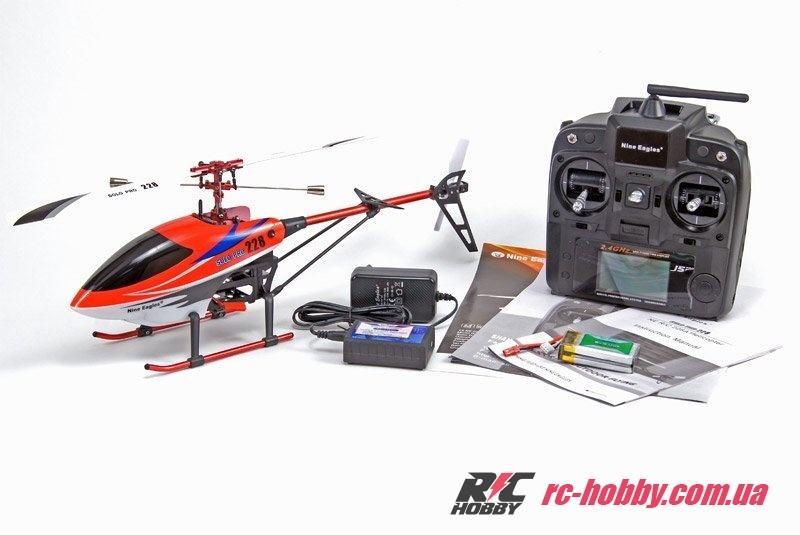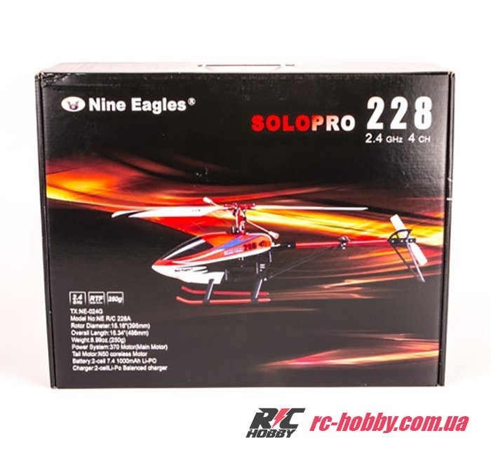 Магазин радиоуправляемых моделей RC HOBBY предлагает rc-шникам, имеющим начальную подготовку в управлении радиоуправляемыми моделями, ознакомиться и купить вертолет Nine Eagles Solo PRO 228 RTF 498 мм 2,4 ГГц. Аппарат обладает всеми характеристиками для уличных запусков. Его немалые габариты, а именно длина - 498 мм, и мощность аппарата позволяют совершать различные трюки в воздухе. Также, модель приспособлена к запускам в просторных помещениях.