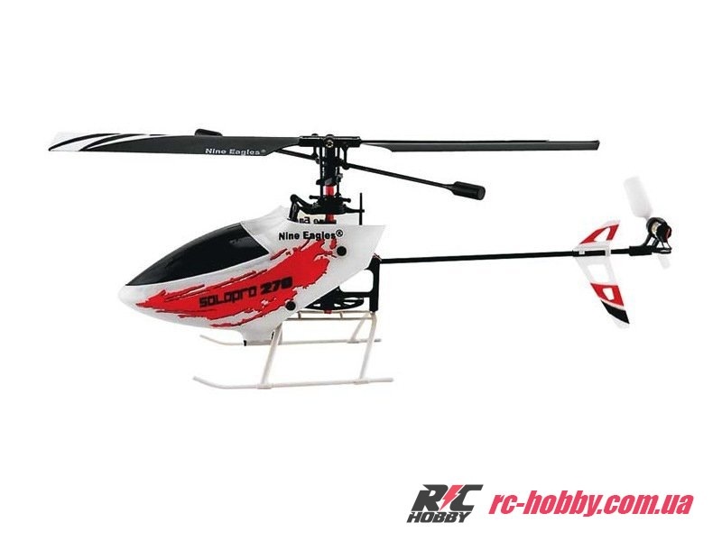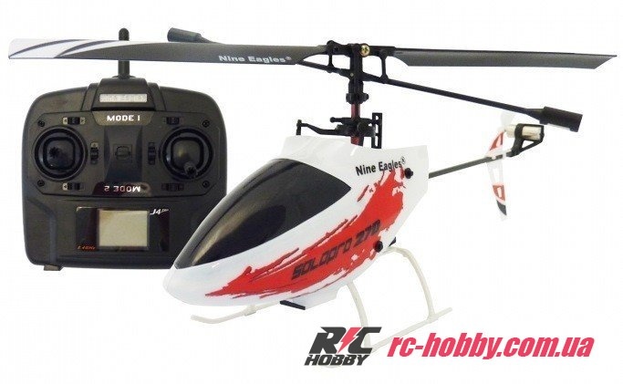 Производитель Nine Eagles оборудовал аппарат коллекторными, электрическими двигателями, которые работают от литий-полимерного аккумулятора емкостью 150 мАч. Управляется вертолет по 4-м каналам в диапазоне радиочастот 2,4 ГГц, это помехоустойчивая частота, при использовании которой возможно пилотирование нескольких моделей одновременно. Пульт управления имеет встроенный LCD экран, на который выводятся все основные показатели пульта управления, а также уровень заряда аккумуляторов или батарей передатчика. При необходимости можно подзарядить бортовой аккумулятор модели от пульта управления даже на улице. Радиопередатчик оборудован специальным разъемом, в который удобно и просто вставить аккумулятор. Подзарядка длится около 30 минут, и модель снова готова к полетам. Время зарядки зависит от уровня заряда батареек или аккумуляторов самого передатчика.