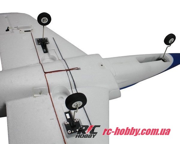 Самолет изготовлен из легкого и прочного ЕРО материала, поставляется уже предварительно окрашенным и с установленными мотором, импеллером и сервоприводами.