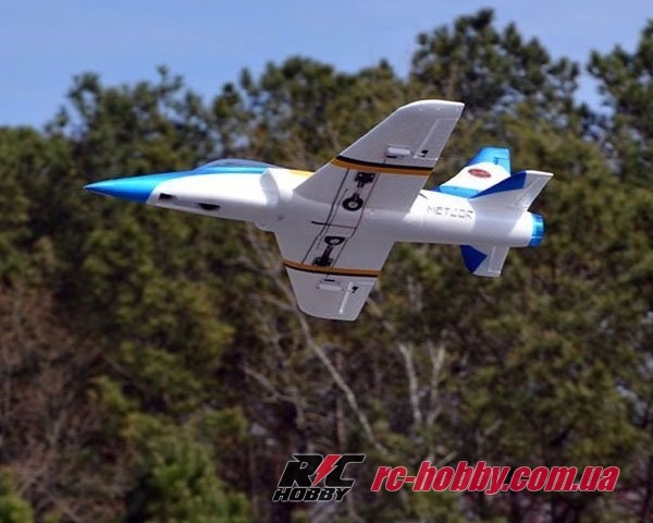 Мощный бесколлекторный двигатель с 70-миллиметровым электрическим импеллером развивает скорость модели до 90 км/час.