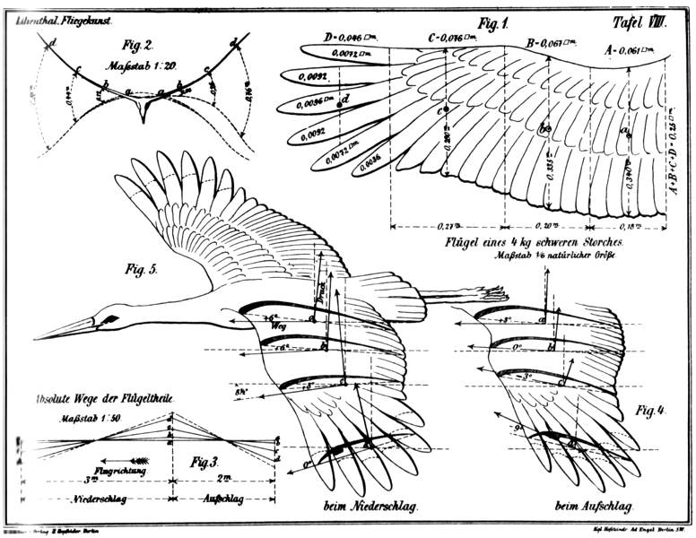 Не смотря на то, что строение птичьих крыл уже ранее изучалось другими исследователями, братьями Лилиенталь были впервые созданы точные измерения и описаны основы принципа парения птиц. Наработки немецких коллег были оценены самими Братьями Райт, а расчетные таблицы названы лучшими на протяжении двух последующих десятилетий. Благодаря своей поэтапной работе («От шага к прыжку, от прыжка к полету») братьям все же удалось выполнить свой первый успешный планирующий полет.