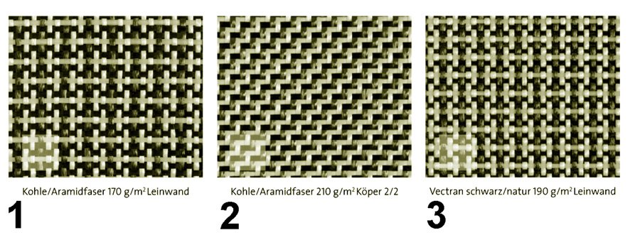 Кроме того, существуют еще отдельные разновидности тканей, в которых сочетаться карбоновые и арамидные волокна.