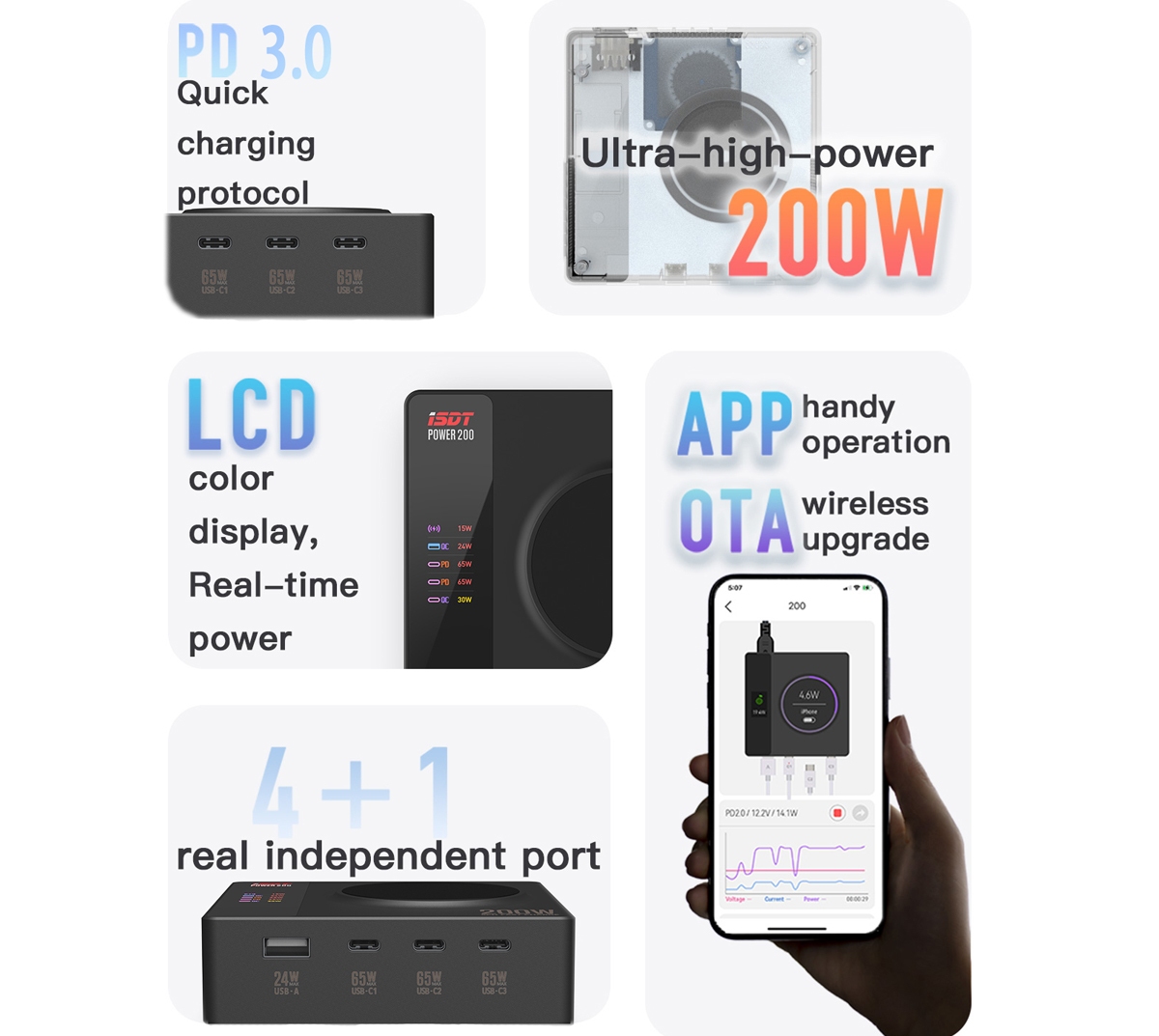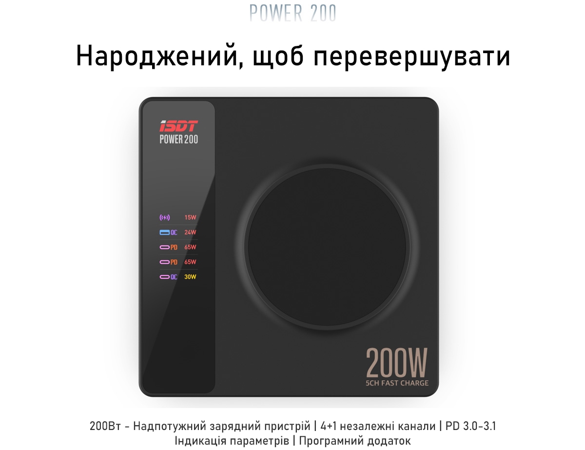 Power 200 ISDT AC100-240В 5-12В 65Вт USB Wireless безконтактний зарядний пристрій (ISDT Power 200)