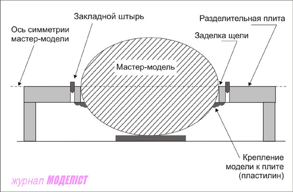 1. Изготовление первой половинки формы на разделительной плите