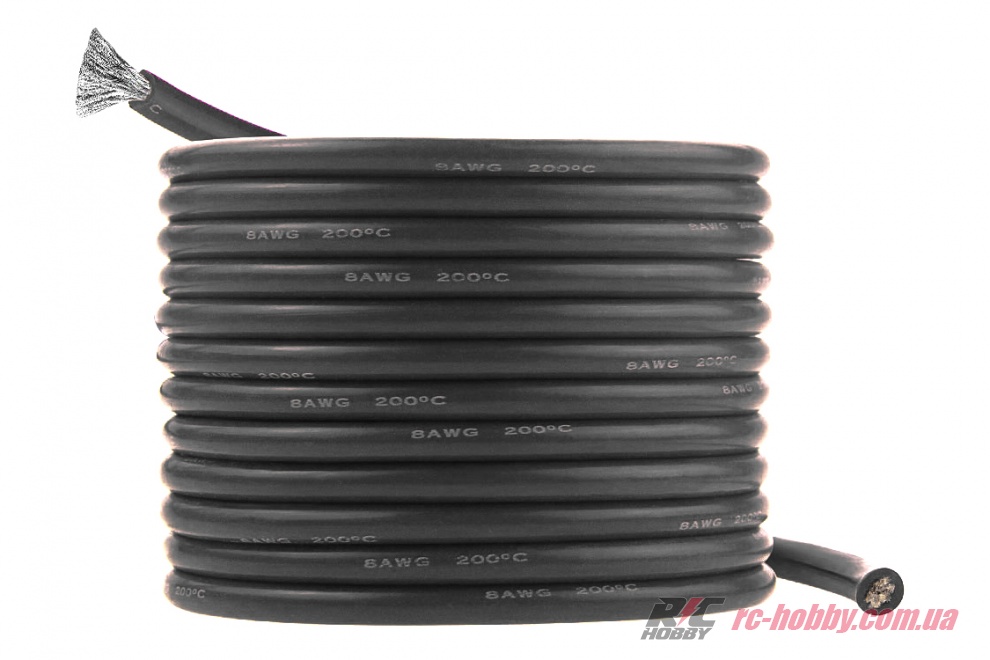 Провод силиконовый QJ 8 AWG (черный), 1 метр