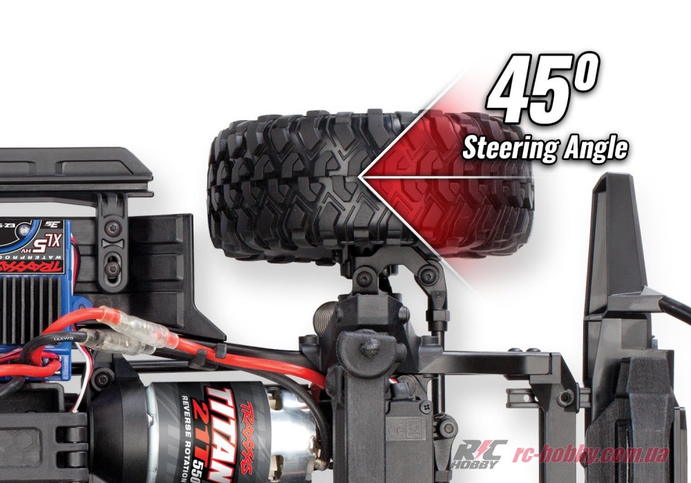 Важлива особливість цієї машини на радіокеруванні – повна пило- та вологозахищеність елементів радіоуправління TQ™ 2CH 2,4 ГГц, сервоприводу та інших деталей.