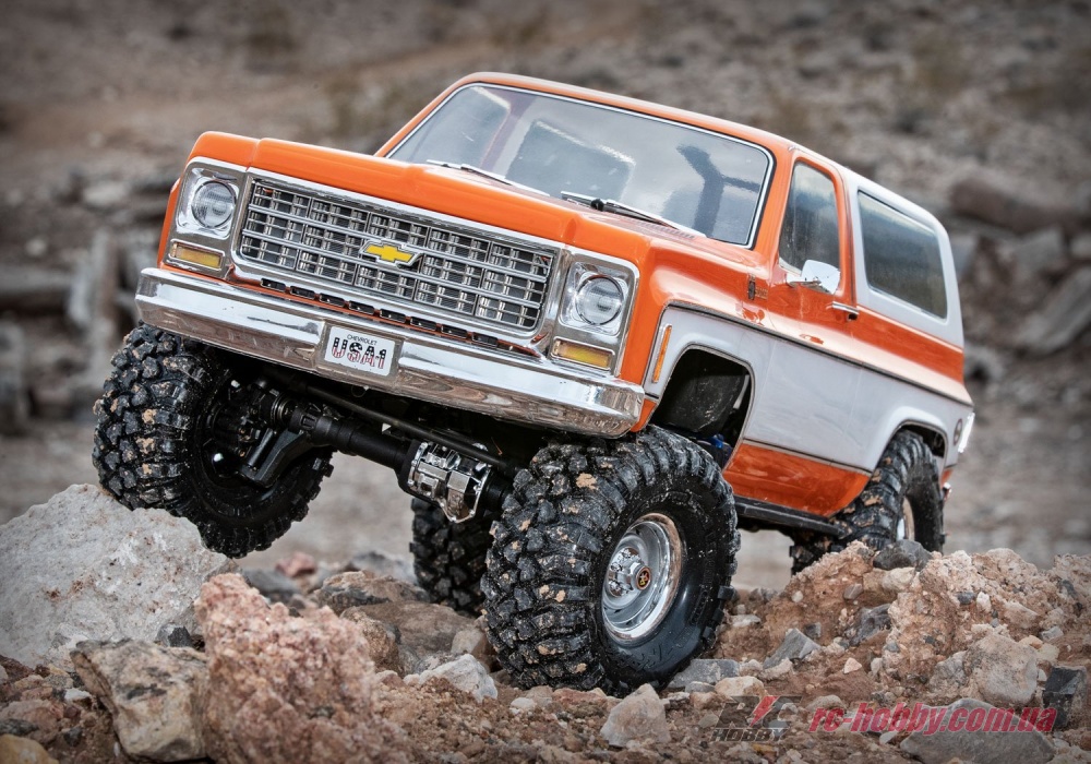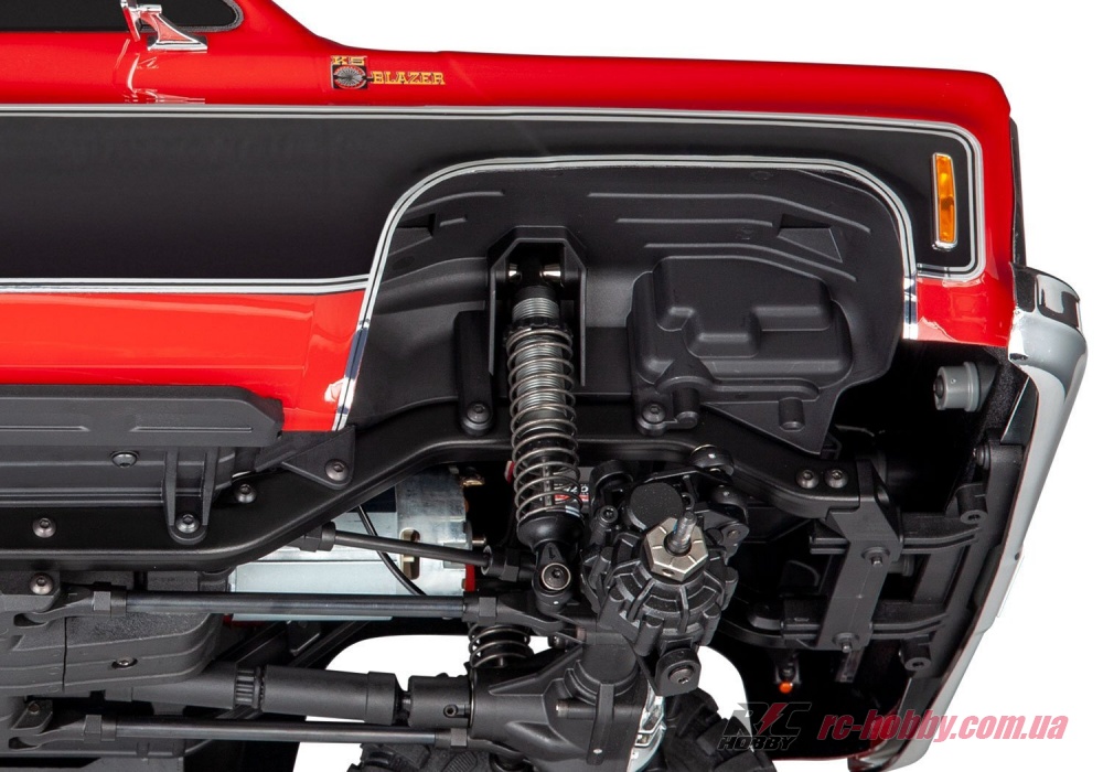 TRX-4 Blazer, оснащений точними копіями коліс Rally, хромованими ґратами з високою деталізацією та повним набором масштабних деталей, несе стиль Blazer із міцністю та технологіями, які можуть бути тільки у Traxxas.