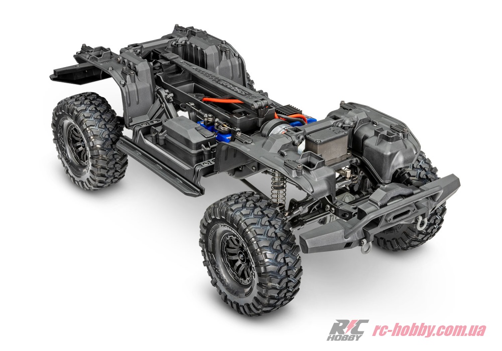 TRX-4 DEFENDER — це шедевр масштабу 1:10: розміри 586x292x249 мм, вага 3372 г і ліцензований кузов із решіткою, шноркелем і запасним колесом.