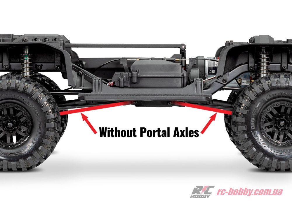 Двошвидкісна трансмісія з дистанційним перемиканням і портальні мости з кліренсом 80 мм перетворюють скелі на дріб’язок.