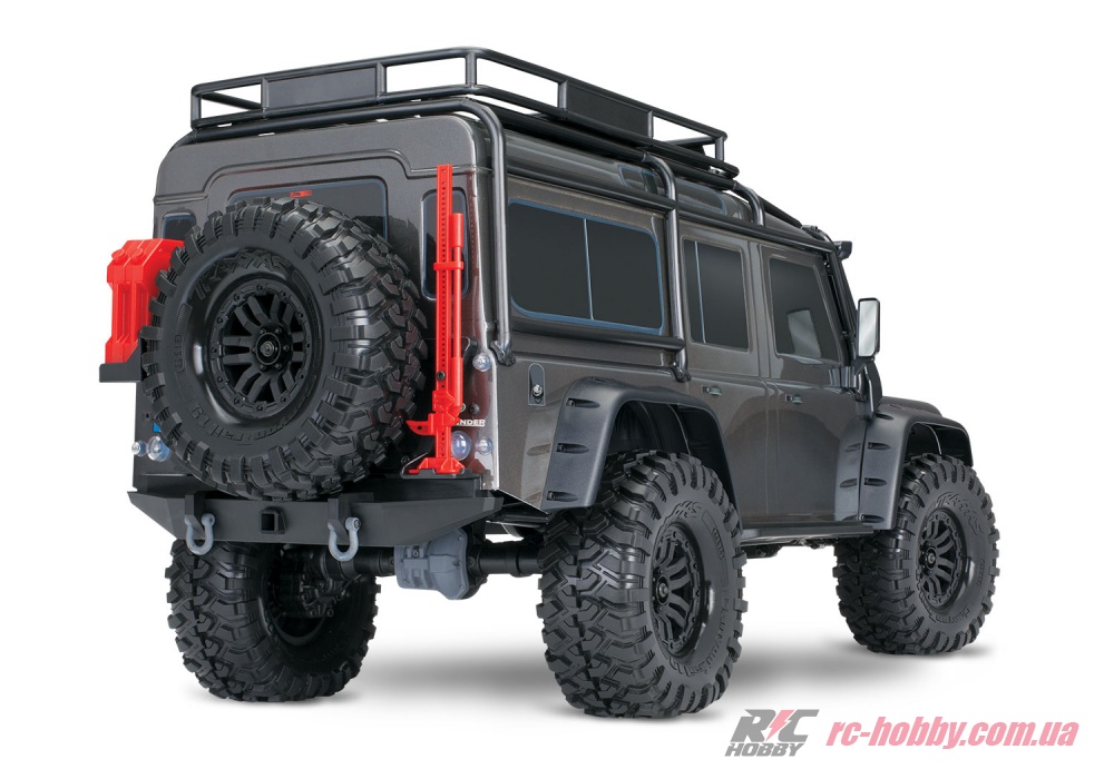 TRX-4 DEFENDER — це шедевр масштабу 1:10: розміри 586x292x249 мм, вага 3372 г і ліцензований кузов із решіткою, шноркелем і запасним колесом.