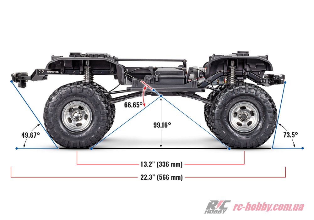 TRX-4 F150 High Trail — це шедевр реалізму: розміри 564x270x277 мм, вага 3330 г і ліцензований кузов із ролбаром, хромованими фарами та безкліпсовим кріпленням.