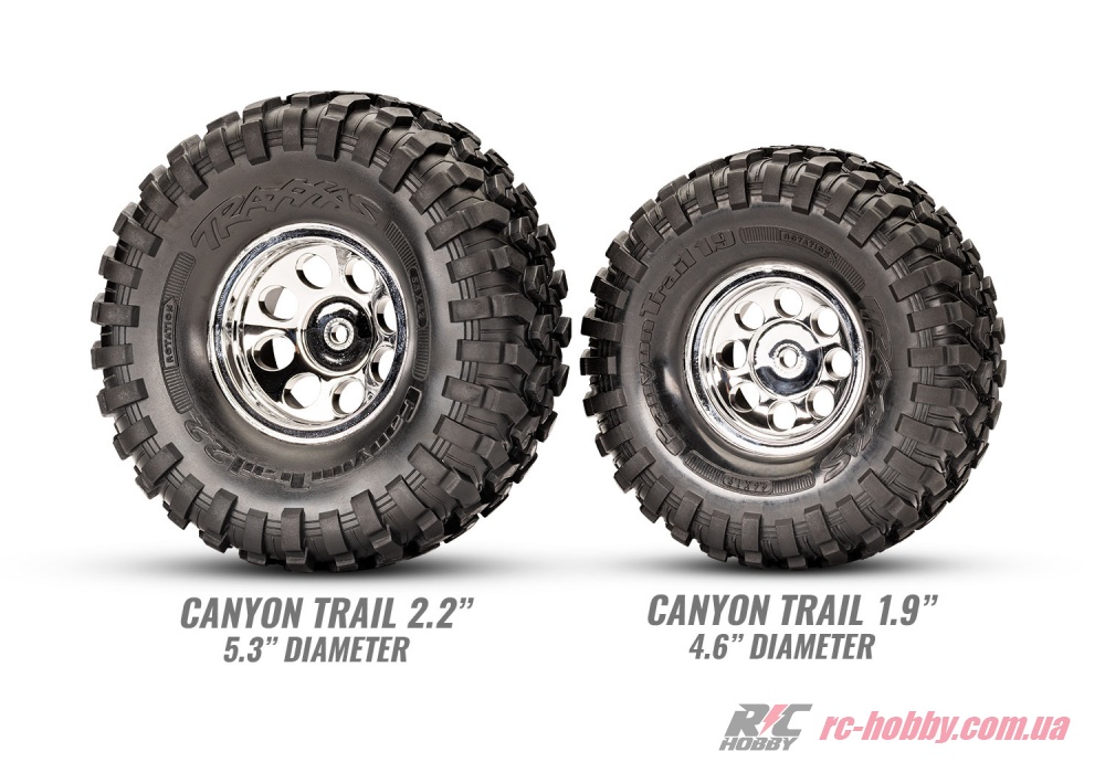 Шини Canyon Trail на цільнолитих дисках (2.2x1.34") забезпечують надійне зчеплення з поверхнею та стильний вигляд, ідеально доповнюючи позашляховий характер моделі.