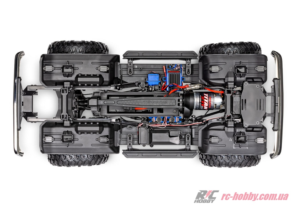 Система TQi 4CH 2.4 ГГц із чотирма каналами дозволяє дистанційно перемикати передачі та блокувати диференціали, забезпечуючи повний контроль над моделлю. Радіус дії до 300 м дає свободу для дослідження великих територій.