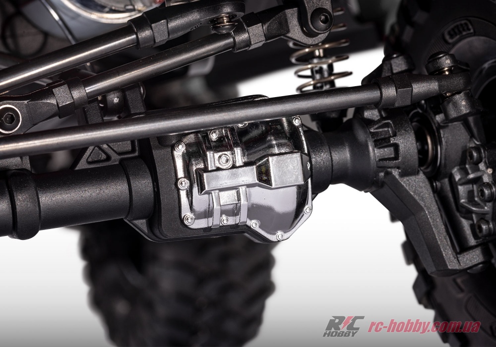 З кліренсом 99 мм, двошвидкісною трансмісією з дистанційним керуванням і портальними диференціалами із загартованої сталі, ця модель легко долає каміння, бруд чи пісок.