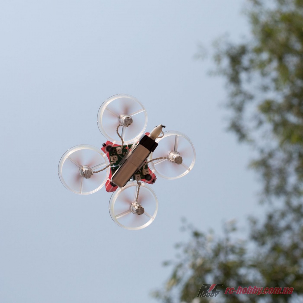 Один заряд бортового літій-полімерного акумулятора дозволить інтенсивно літати до 8 хвилин. Комплектація BNF — це відсутність передавача і системи керування, які потрібно купити додатково і налаштувати під коптер.