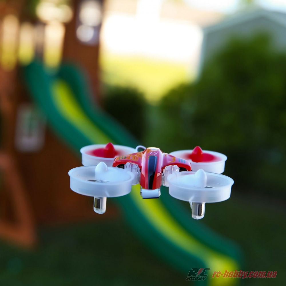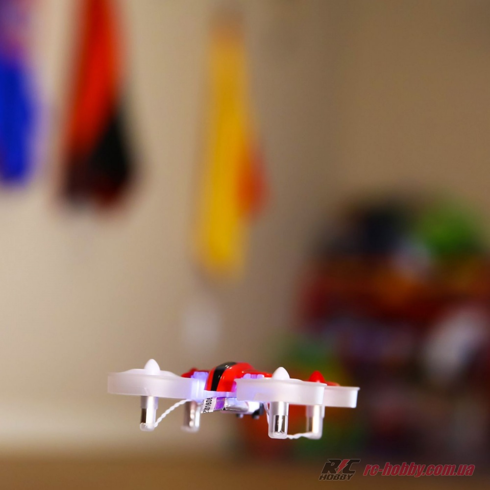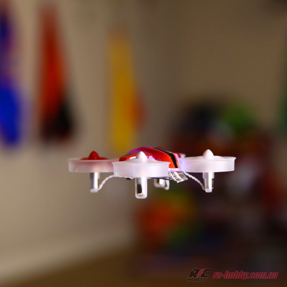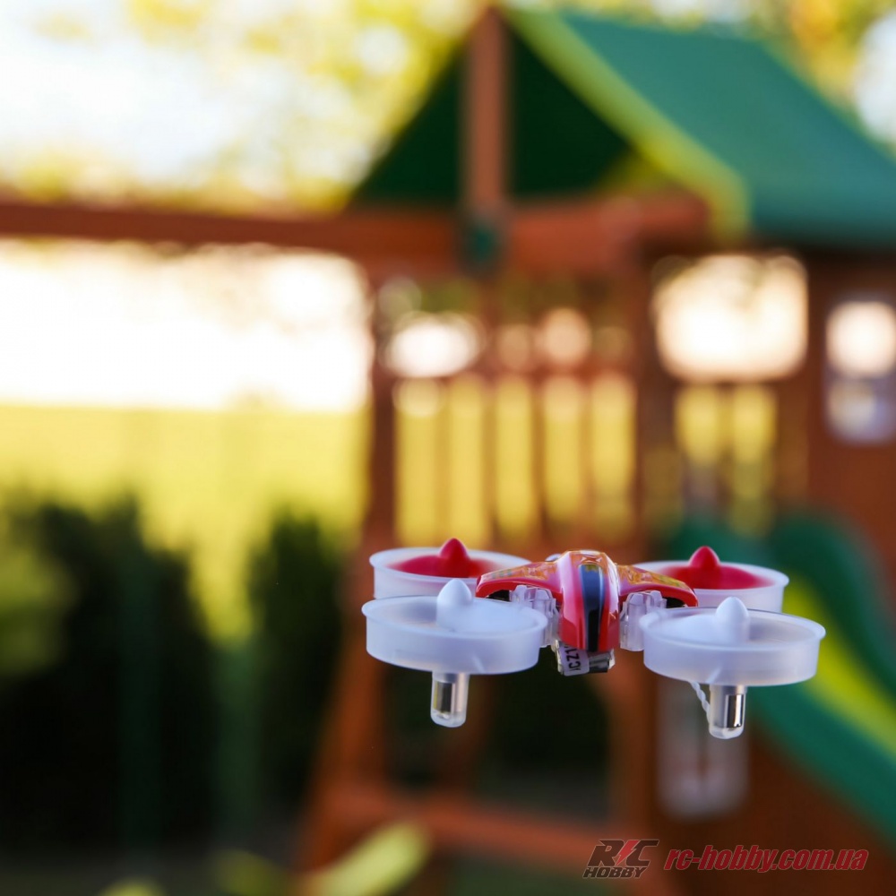Дрон поставляється в RTF-комплектації, повністю готовим до польоту і заїзду. Радіус дії сигналу - до 300 метрів, польотний час - до 5 хвилин.