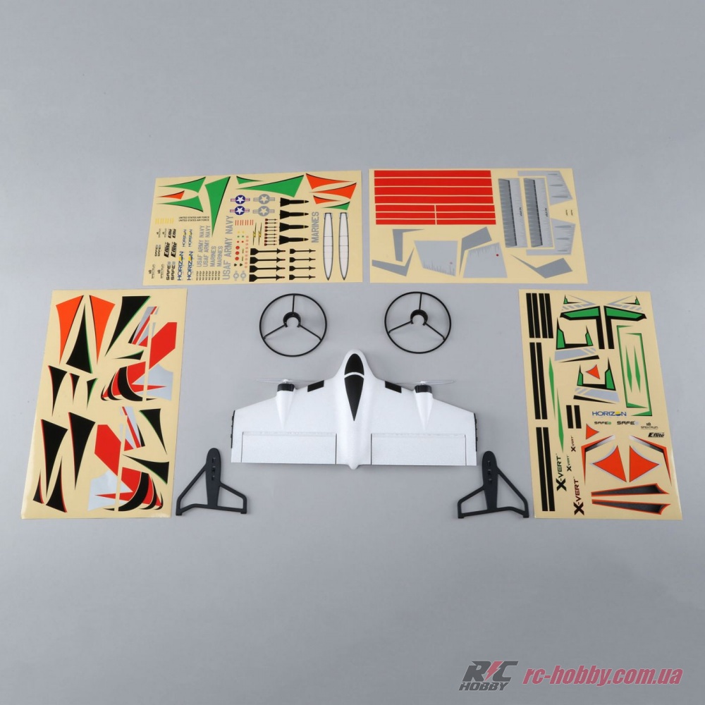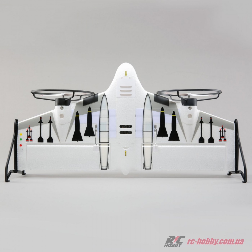 Літаюче крило - дрон E-flite X-VERT VTOL їде до вас зібраним і налаштованим, але в комплектації BNF (Bind-N-Fly). Додатково потрібно купити акумулятор, зарядний пристрій і передавач на 6 + каналів сумісний з DSM2 / DSMX.