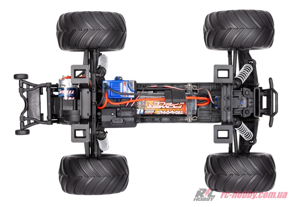 Цей RTR (Ready-To-Run)-монстр поставляється з акумулятором NiMH 8,4В 3000 мАг 7-cell iD і зарядним Traxxas USB-C NiMH iD 4А 45Вт (блок живлення та кабель докуповуються окремо).