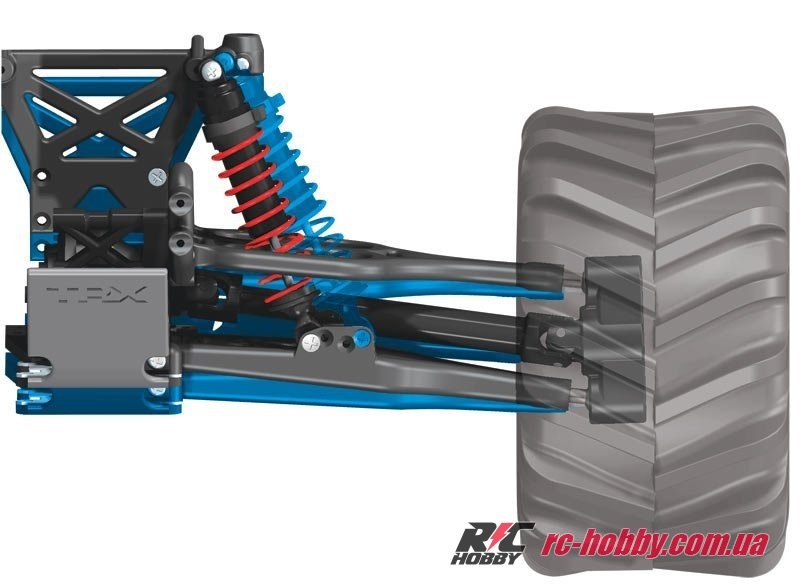 Повний привід 4WD, колісна база 305 мм і диференціали із загартованої сталі з конічними шестернями роблять цього монстра невразливим на будь-якій поверхні.