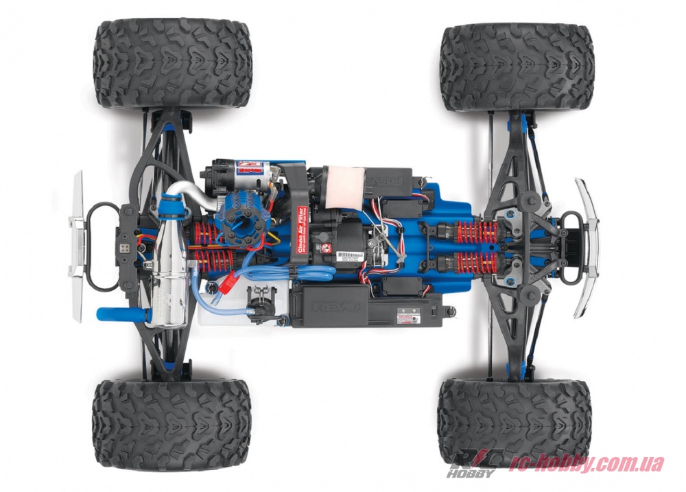 Серце REVO — нітродвигун Extreme Power TRX 3.3 Racing Engine із системою EZ-Start, який оживає одним натиском кнопки й розганяє машину до шалених 80 км/год.