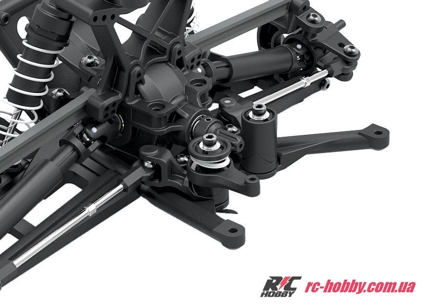 Корпус этой машины на радиоуправлении выполнен из легкого и прочного композитного нейлона. Упругий материал надежно защищает начинку модели от ударов и столкновений. Подвеска - жесткая, клиренс – высокий, а внедорожные колеса с оригинальным рисунком протектора – большого размера. Все детали продуманы для обеспечения максимальной проходимости монстра по бездорожью.