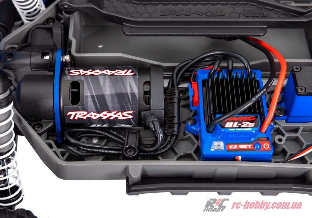 Безколекторна система Traxxas BL-2s 3300KV із регулятором BL-2S ESC і повним вологозахистом розганяє цього звіра до 50 км/год, додаючи додатковий крутний момент для ефектних пробуксовок і вибухового прискорення.