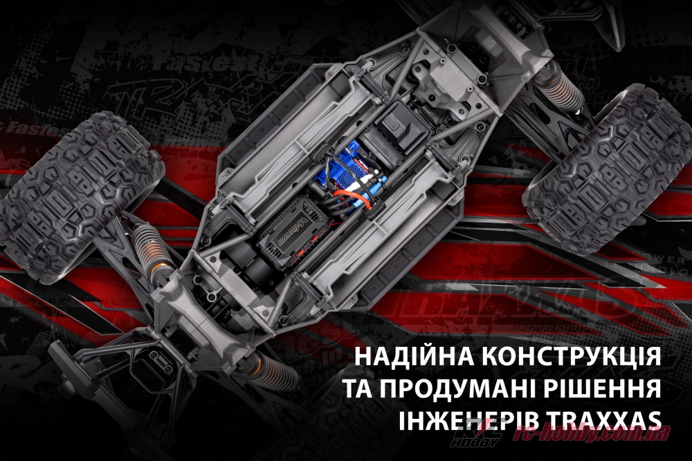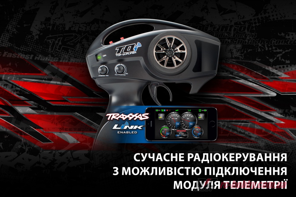 Система радіокерування TQi 2,4 ГГц із технологією TSM (Traxxas Stability Management) забезпечує точне керування та стабільність навіть на високих швидкостях.