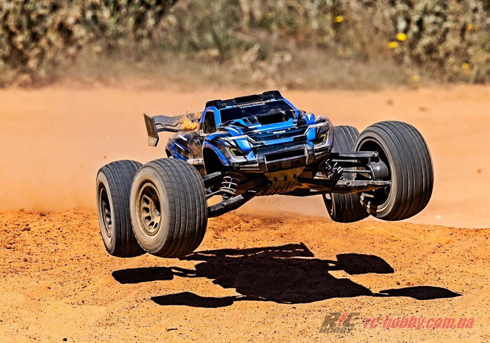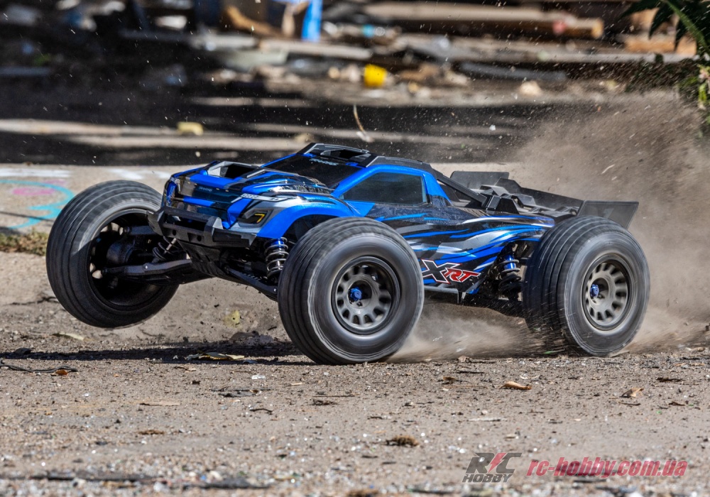 Низький центр ваги Traxxas XRT 78086-4, розширене шасі і плаский кузов забезпечують впевненість і контроль, оскільки авто розганяється до максимальної швидкості майже 100 км/год — тільки дайте йому простір!