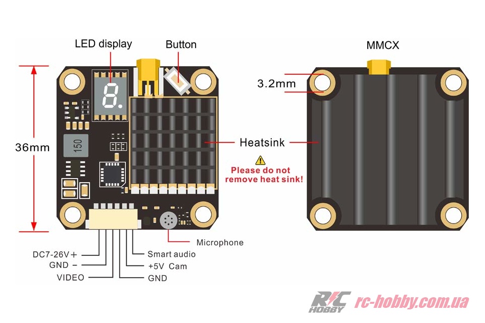Відеопередавач AKK FX2 Dominator 5.8GHz 2000mW 30.5x30.5мм