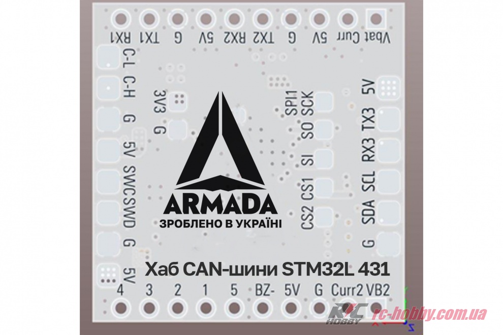 ARMADA CAN HUB на STM32L431 — це мініатюрний 4-портовий CAN-хаб для автопілотів Cube Orange/Blue/Black, який дозволяє підключити до 4 DroneCAN-пристроїв (GPS, ESC, датчики) до одного CAN-порту.