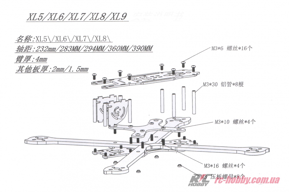Рама квадрокоптера Readytosky XL10 10" 410мм карбоновая