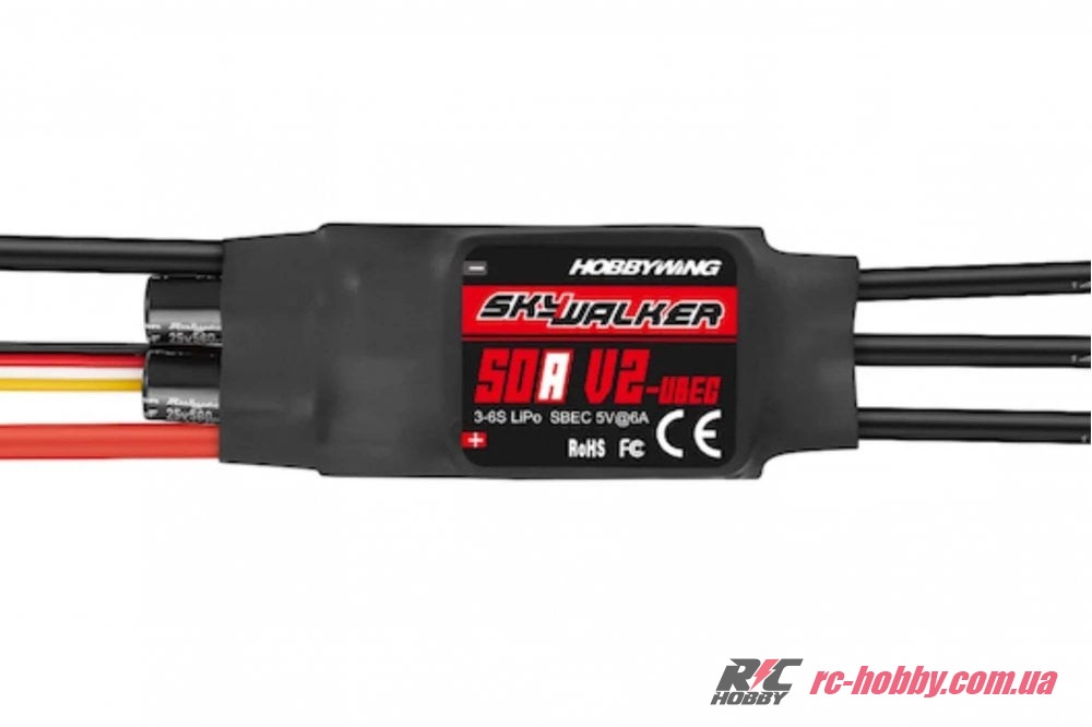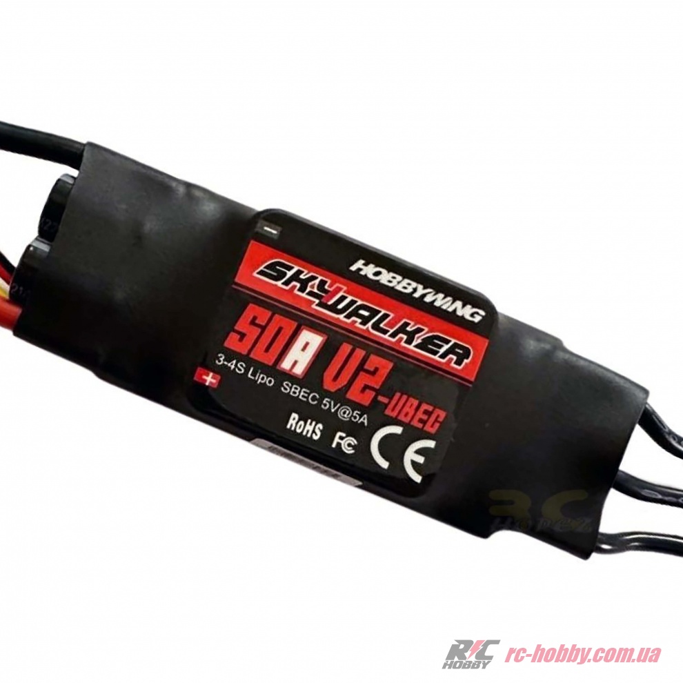 SKYWALKER 50A V2 HOBBYWING ESC UBEC 3-4S 5A BEC регулятор (HW80060442)