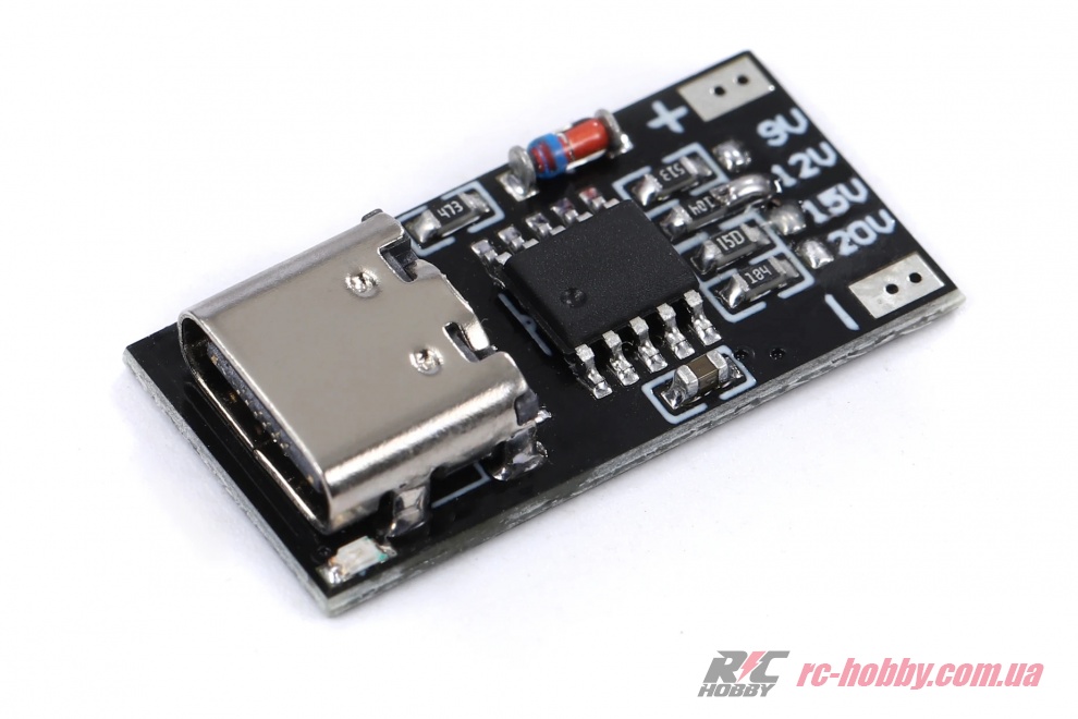 Модуль PD-тригера з роз'ємом USB Type-C на мікросхемі XQC110 виконує можливості керування вихідною напругою джерела живлення, що підтримує стандарт Power Delivery 3.0, без можливості зміни напруги перемикання "на льоту" (всього доступно 4 фіксованих значення: 9/12/15/20V) . Модуль лише перемикає напругу та ніяк не впливає на вихідну потужність Вашого джерела живлення.