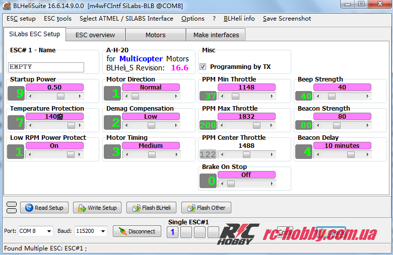 • Програмне забезпечення: BLHeli_S V16,6 A-H-20