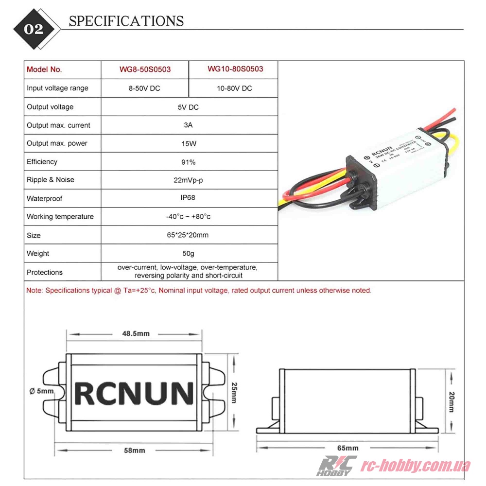 Ось вам високоякісний DC-DC перетворювач RCNUN від WenGao (Артикул WG10-80S0503). Цей модуль ідеально підходить для безпечного та ефективного зниження високої напруги до стандартних 5В, забезпечуючи при цьому максимальний захист від зовнішнього середовища.