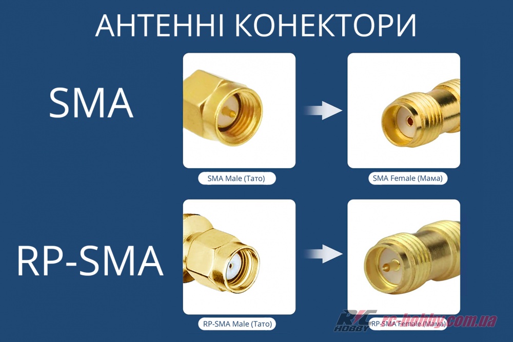 Технічні характеристики 50 шт - Перехідники кутові 135/45° для FPV та радіообладнання (SMA M - RP-SMA F)